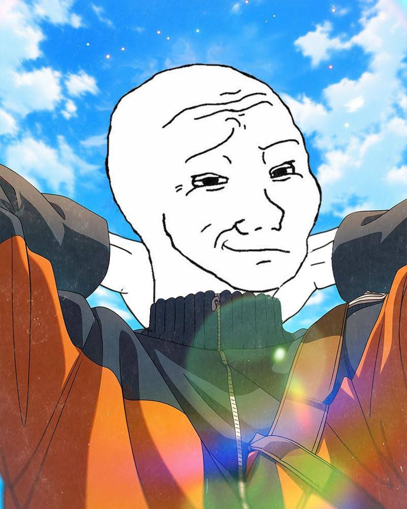 Wojak in a zip up turtleneck in the sun — farm.meme