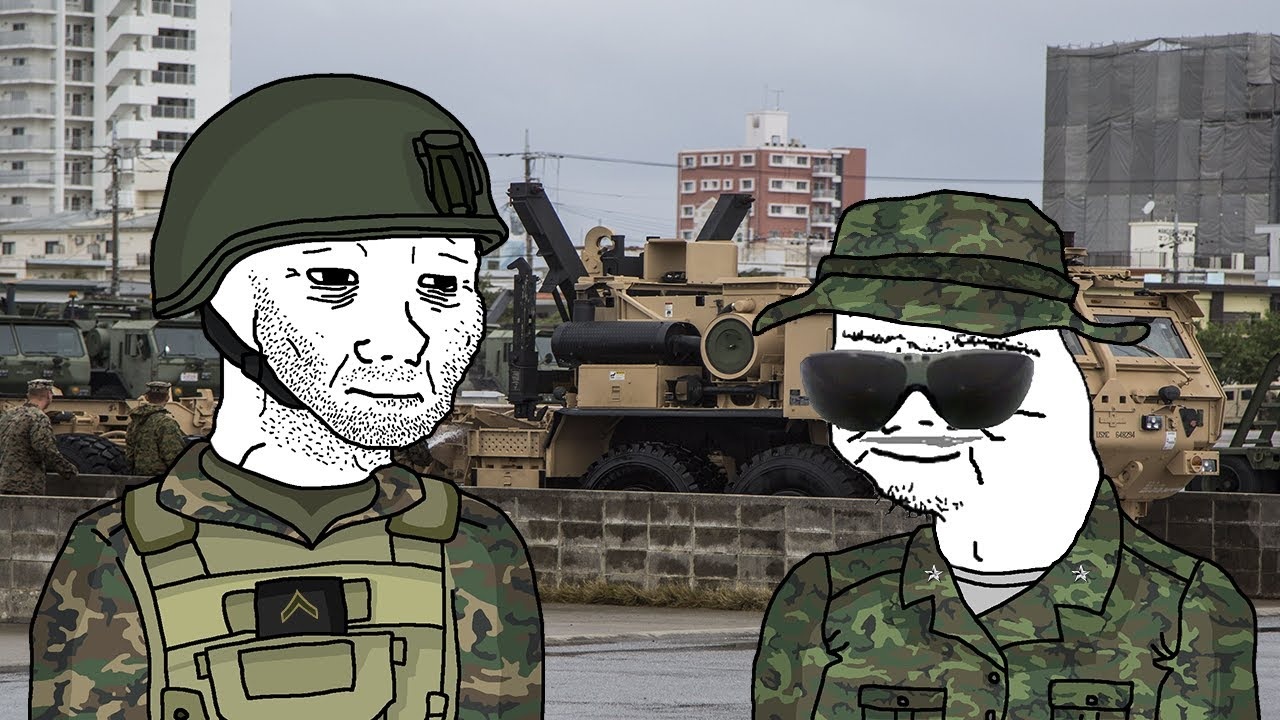 Wojak and Boomer in a warzone