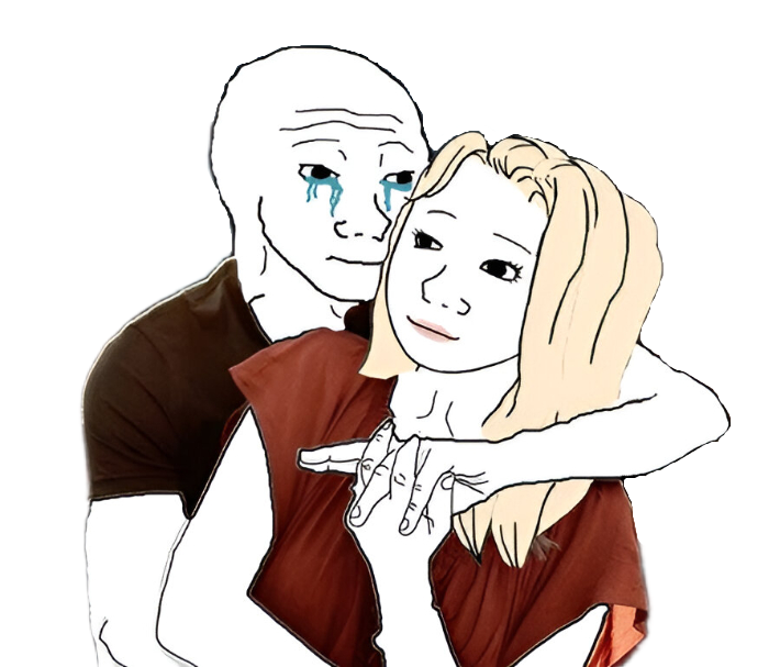 Crying Wojak Hugging Trad Girlfriend — farm.meme