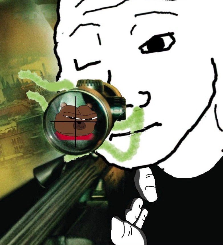 Wojak goes bear hunting with sniper rifle — farm.meme