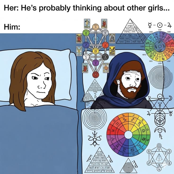 He's probably thinking of other girls. Occult philosopher. — farm.meme