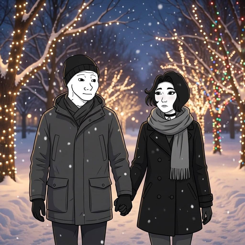 Wojak and Doomer Girl on a walk at Christmas time — farm.meme