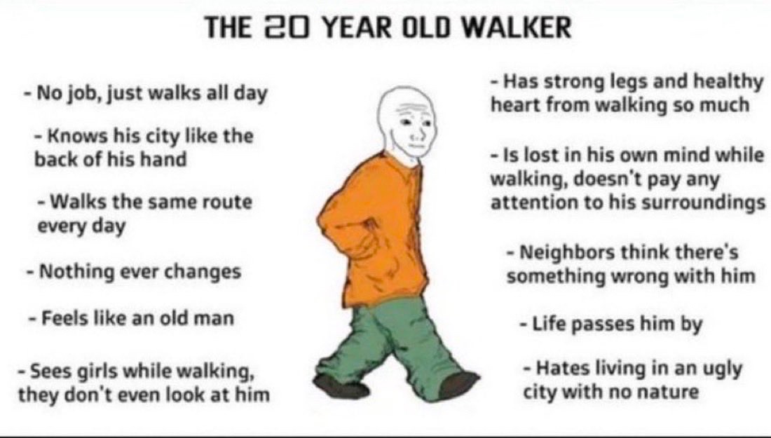 Wojak as The 20 Year Old Walker — farm.meme