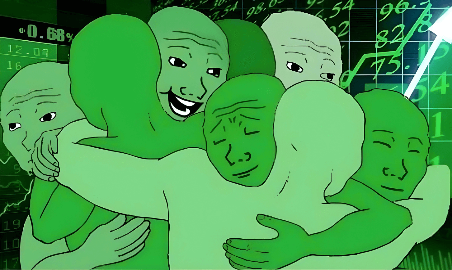 Green Wojak Group Hug. We're all gonna make it. is a Wojak meme uploaded to farm.meme on April 20, 2026 by Big Dog. It belongs to our growing Wojak collection of 876 memes.
