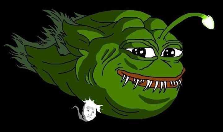 Pepe Anglerfish Monster Eating Wojak parasite — farm.meme