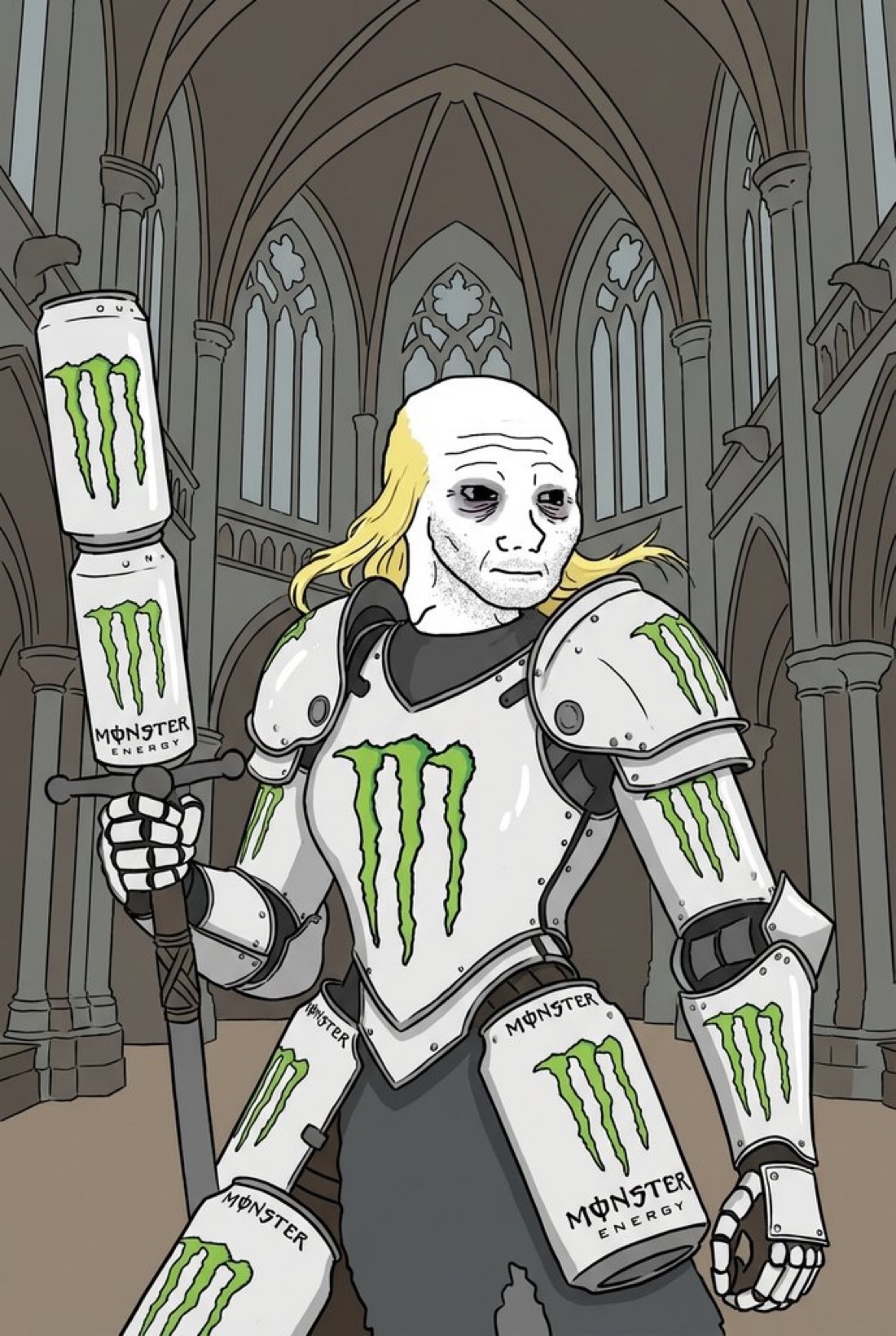 Doomer medieval wojak with Monster armor