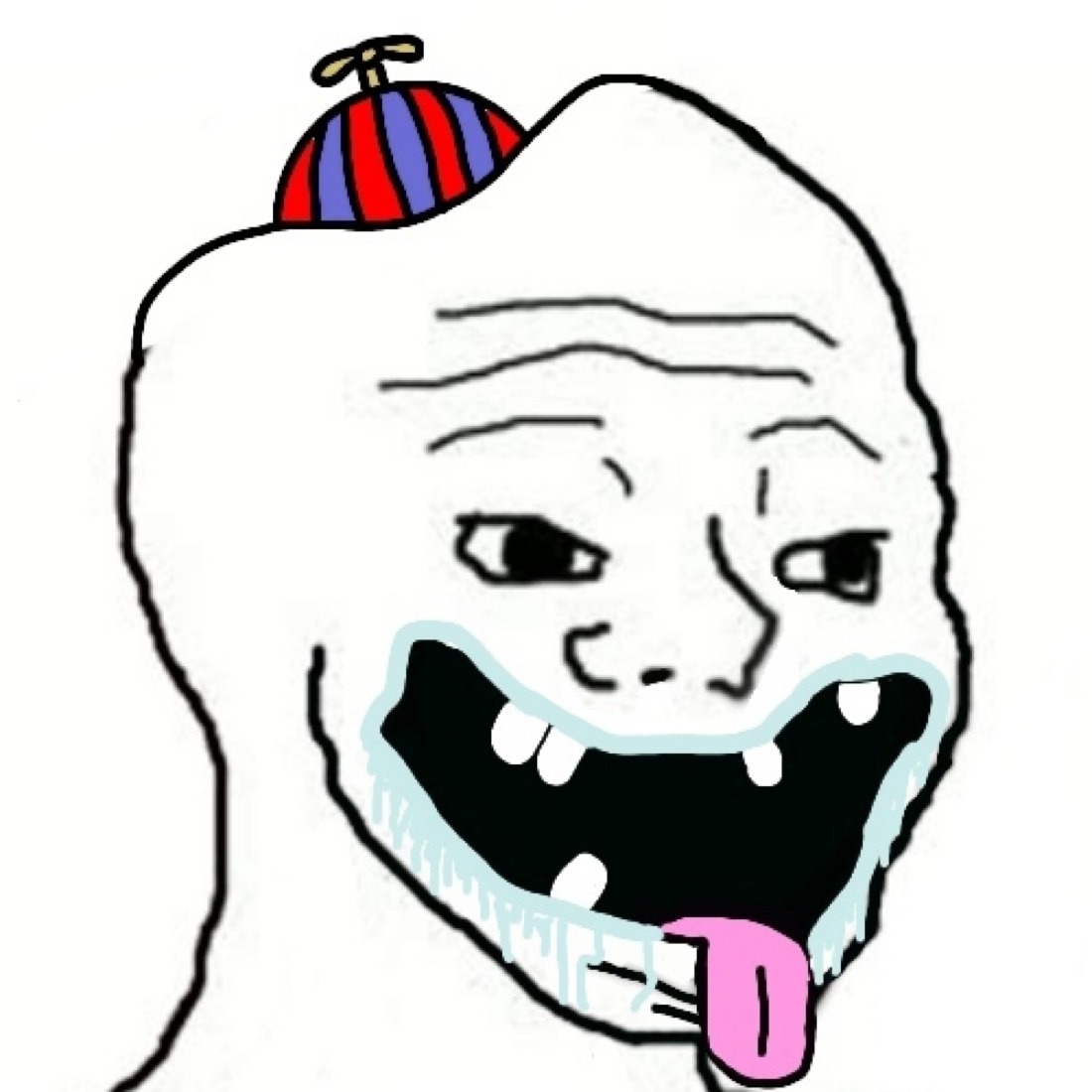 Brainlet with pinwheel hat drooling — farm.meme