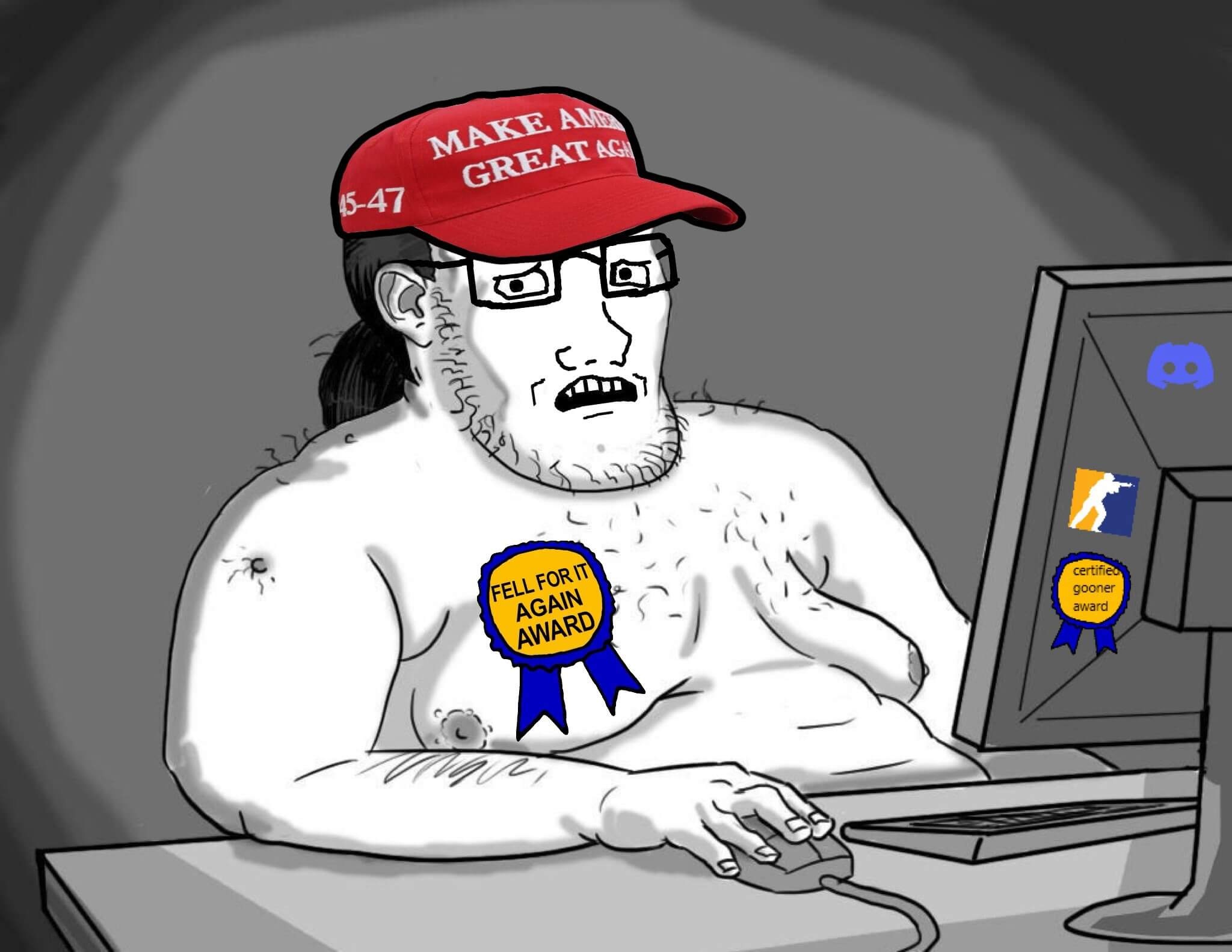 Fat MAGA Fell for it again award is a Wojak meme uploaded to farm.meme on April 17, 2026 by Big Dog. It belongs to our growing Wojak collection of 876 memes.