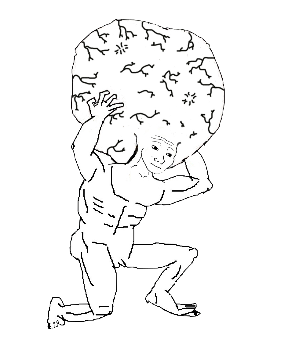 Atlas Wojak holding up his big brain — farm.meme