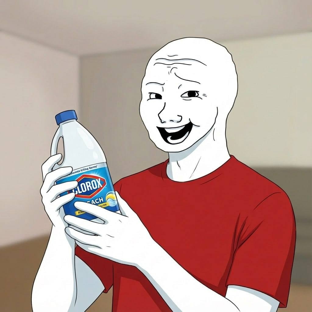 Wojak holds bleach bottle