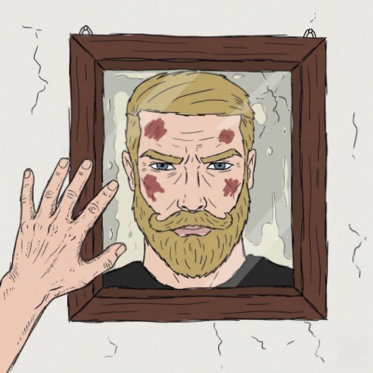 Bruised Chad looks in the mirror