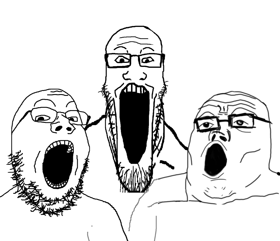 Three soyjaks yelling