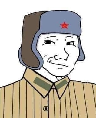 Soviet Wojak wearing ushanka fur hat — farm.meme